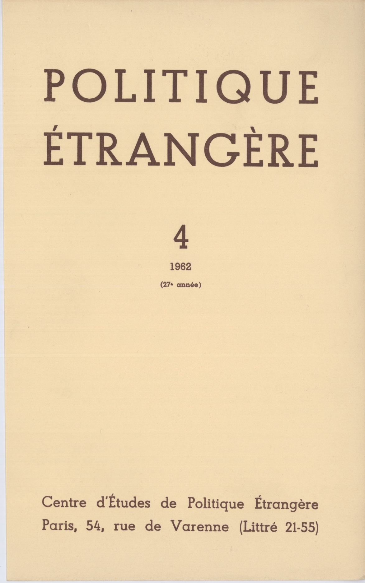 Le général André Beaufre, un des principaux penseurs militaires français du XXe siècle, a écrit plusieurs articles dans Politique étrangère. Il y a notamment publié, en avant première, le premier chapitre de son chef-d’œuvre, Introduction à la stratégie. En 1962, année de la crise des missiles de Cuba, paraît le texte qui suit, intitulé « Les armements et la paix », dans lequel il nuance notamment le risque d’escalade en cas de conflit nucléaire.